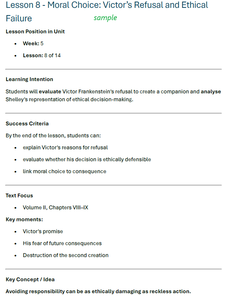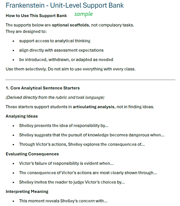 Assessment you can confidently defend. Assessment is where most Frankenstein units fall apart. This unit includes: